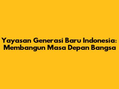 Yayasan Generasi Baru Indonesia: Membangun Masa Depan Bangsa